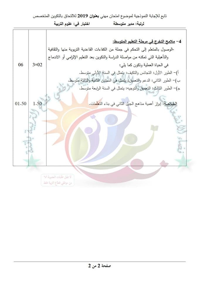 الاجابة النموذجية لمواضيع اسئلة مسابقة مدير متوسطة 2019