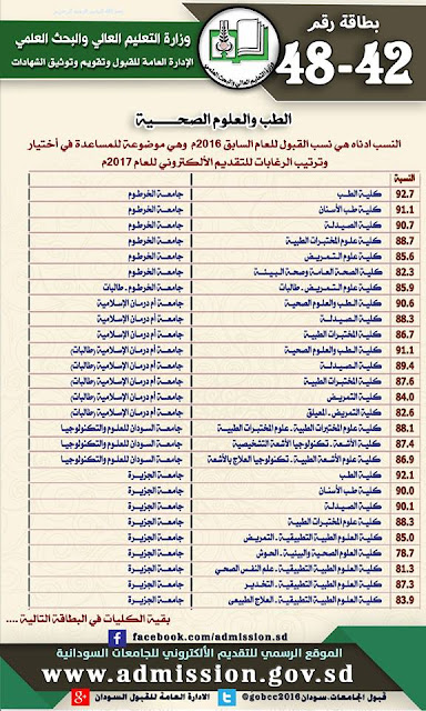 دليل منافسة تخصصات الطب والعلوم الصحية الجامعات السودانية 2018 2019