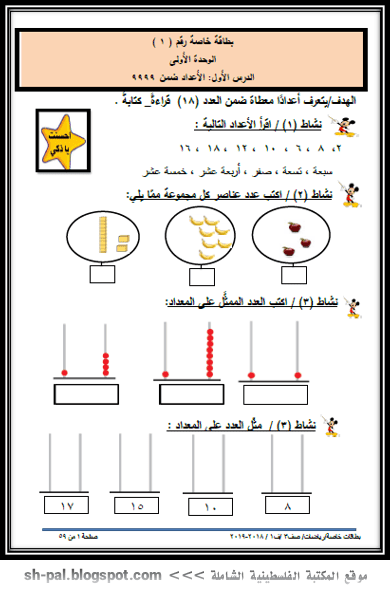 أوراق عمل في الرياضيات للصف الثالث الفصل الأول 2019 المكتبة الفلسطينية الشاملة