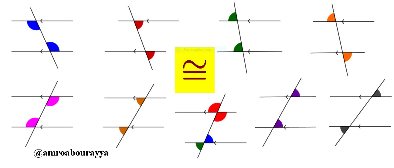 أ عـ مـ ر و أ بـ و ر يـ ا Sur Twitter الزوايا والمستقيمات المتوازية زاويتان متطابقتان الرياضيات Math Geometry